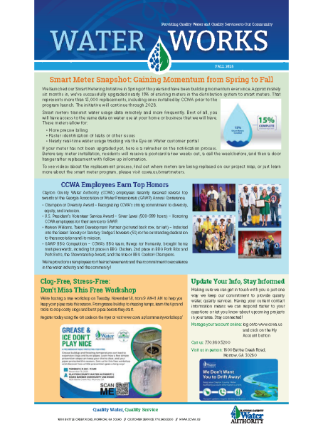 Clayton County Water Authority customers receive a copy of the quarterly Water Works newsletter in their January, April, July and October bills.